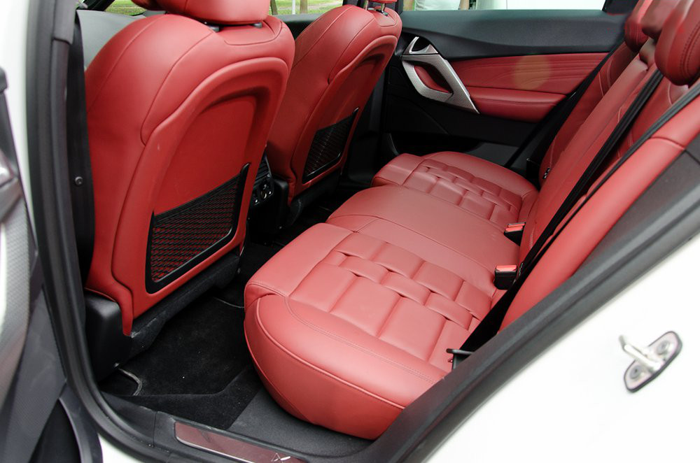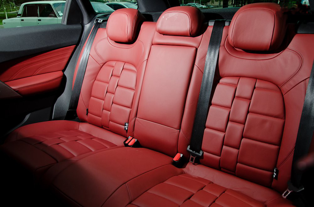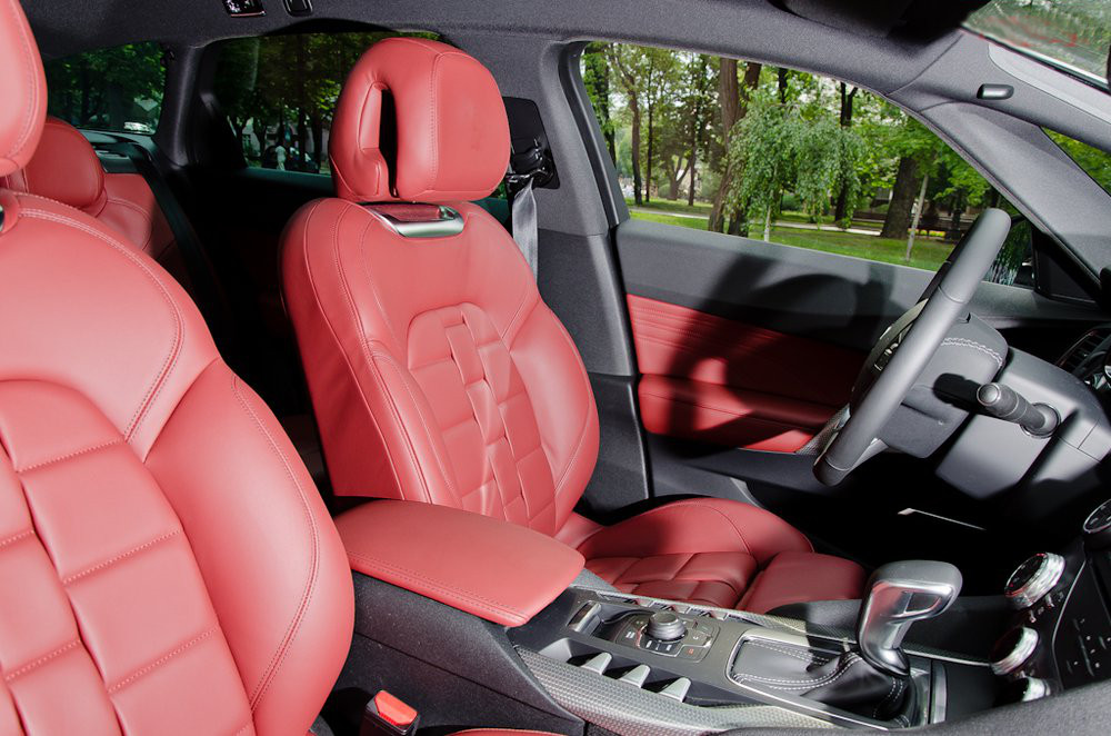 Шикарні червоні сидіння топової комплектації хороші не тільки зовні, але і в далекій дорозі. Готельне спасибі хочеться сказати за висувну передню подушку і пам’ять на два осередки, що особливо було зручно при зміні водіїв у дорозі. До посадки претензій немає. Дах головою також ніхто не підпирав, хоча на зворотному шляху команда водіїв підібралася досить високоросла, я зі своїми 187 см виявився найнижчим.