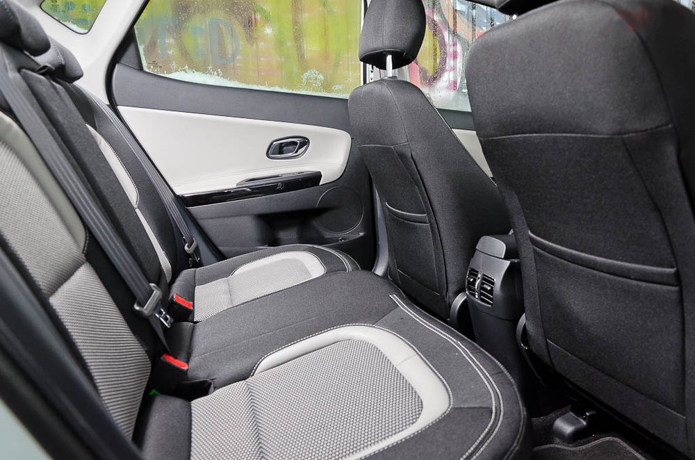 Якщо чіплятися далі, то не зовсім зрозуміла оббивка сидінь, зі вставками з сірого шкірозамінника. Виглядає непогано, але швидко брудниться, в тестовій машині вже видно затерте.